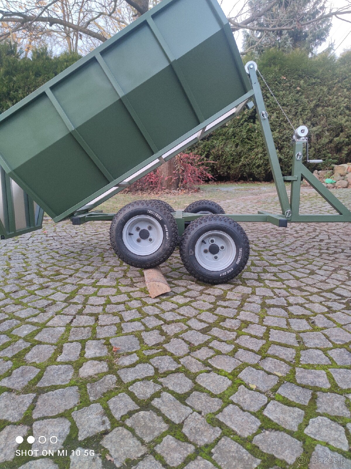 Sprzedam przyczepkę ogrodową ATV za Quada lub traktorek. Wykonana z profili stalowych, burty aluminiowe, dno płyta wodoodporna peri. Uchwyt haka zdejmowany. Po jego zdjęciu przyczepkę można podpiąć do traktorka za pomocą bolca. Wciągarka linkowa - ręczna. Możliwość zamontowania wciągarki elektrycznej 12V. Koła 8 calowe zamontowane na piastach samochodowych. Zawieszenie wahadłowe. Wymiary paki 100x150 cm. Przyczepka bardzo pomocna przy pracach ogrodowych.
