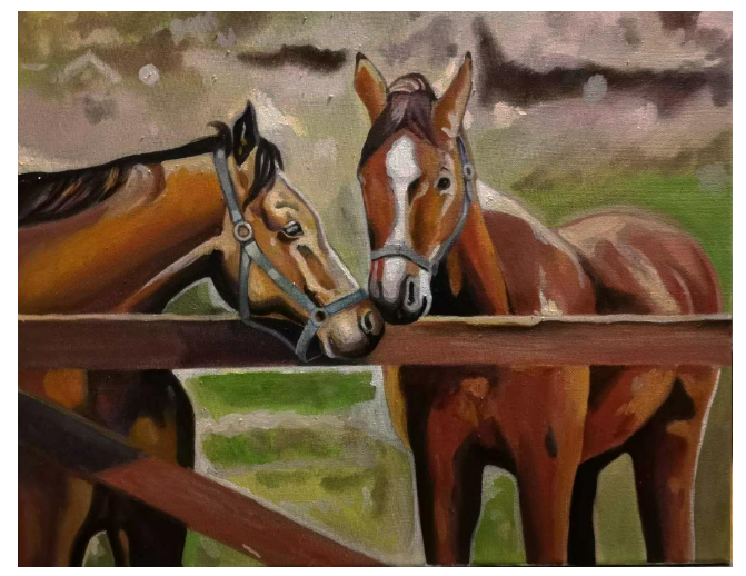 Obraz jest ręcznie malowany farbami olejnymi na płótnie.