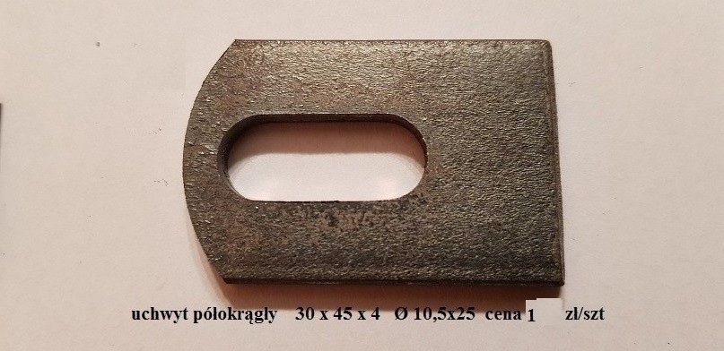 uszy do słupków ogrodzeniowych 30x45x4 półokrągłe, z otworem fi 10,5 x 25