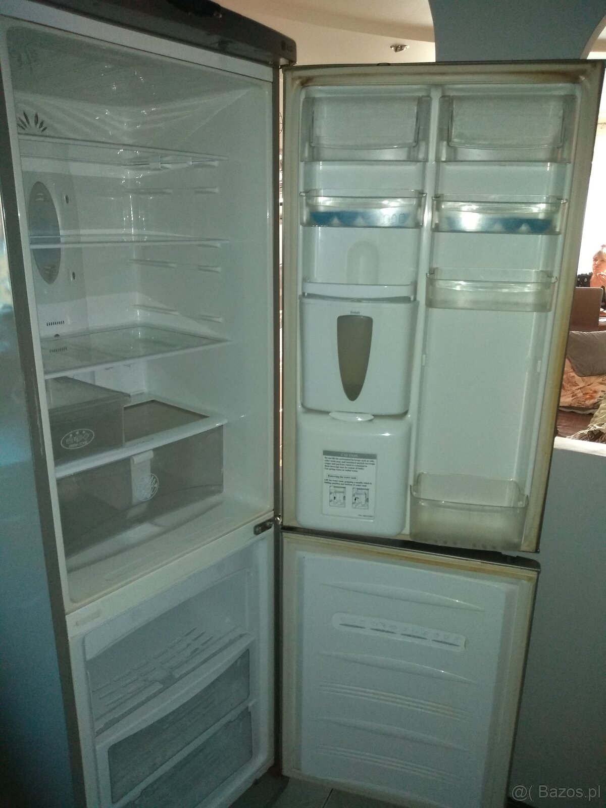 Lodówka w ogólnie dobrym stanie, bezszronowa z podajnikiem zimnego płynu w kolorze srebrnym. Cena 300 zł. do uzgodnienia. Tel. kontaktowy 606765933