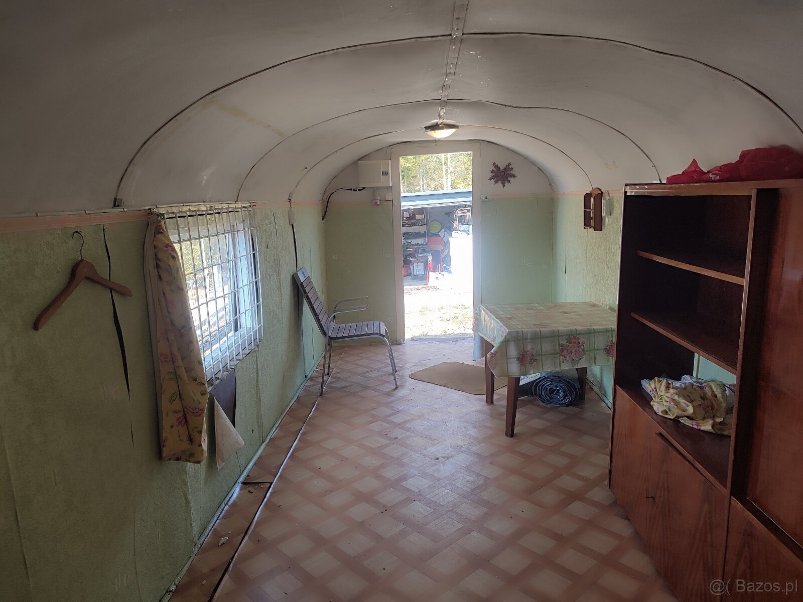 Barakowóz na kołach z instalacją elektryczną.