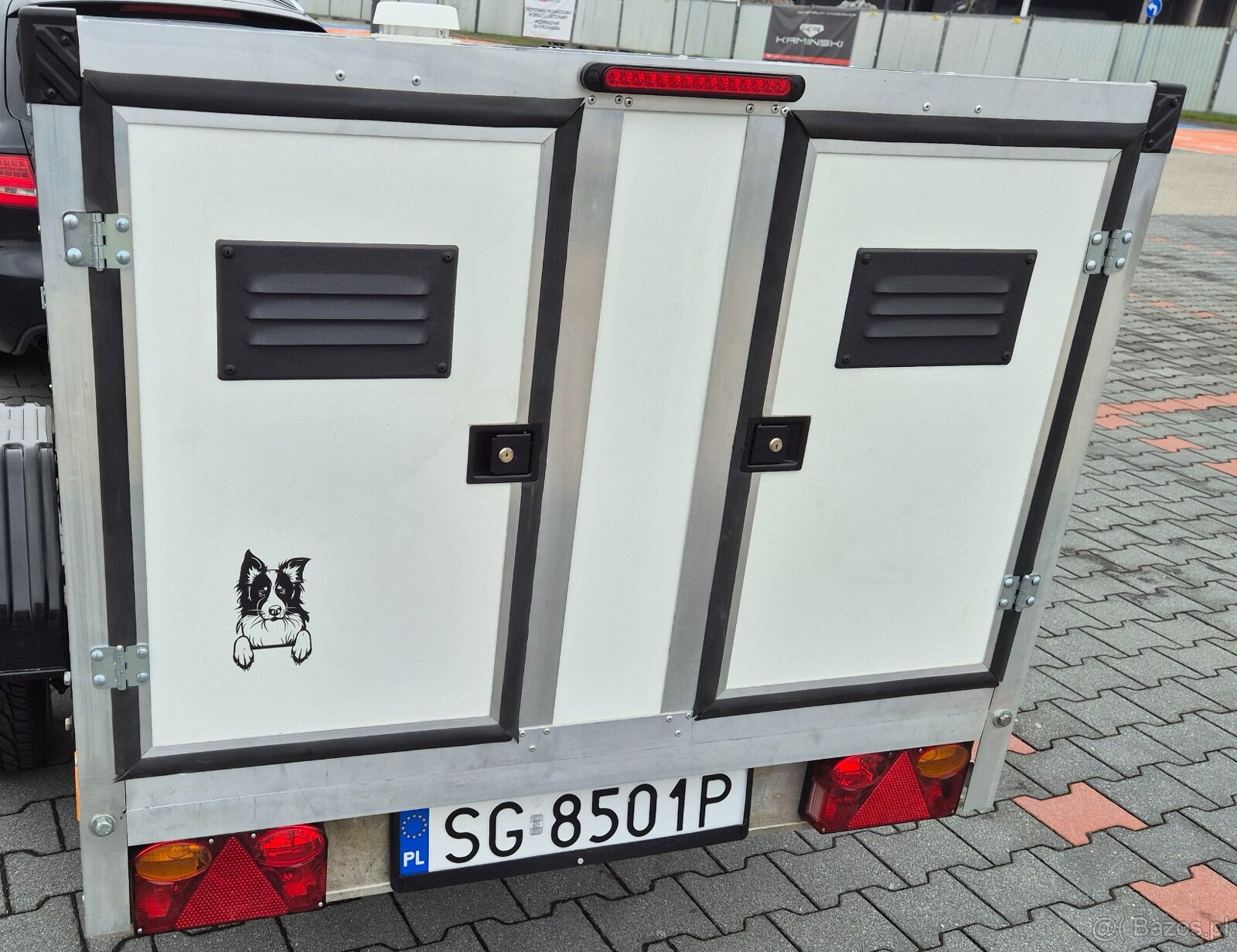 Sprzedam widoczny na zdjęciach boks do przewozu czterech psów jeden pojedynczy ma wymiar 62x100x80 cm ,zabudowa jest nowa nie używana wykonana z płyt termoizolacyjnych o grubości 25mm. Podwozie jest używane typu sam nie wymaga przeglądów okresowych, ubezpieczona i zarejestrowana.