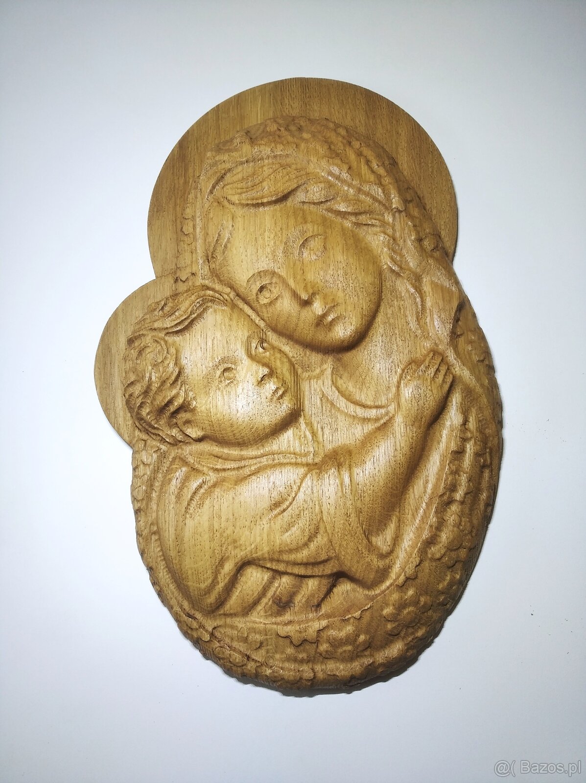Madonna, Jezus, posągi, krzyż, świecznik, miska