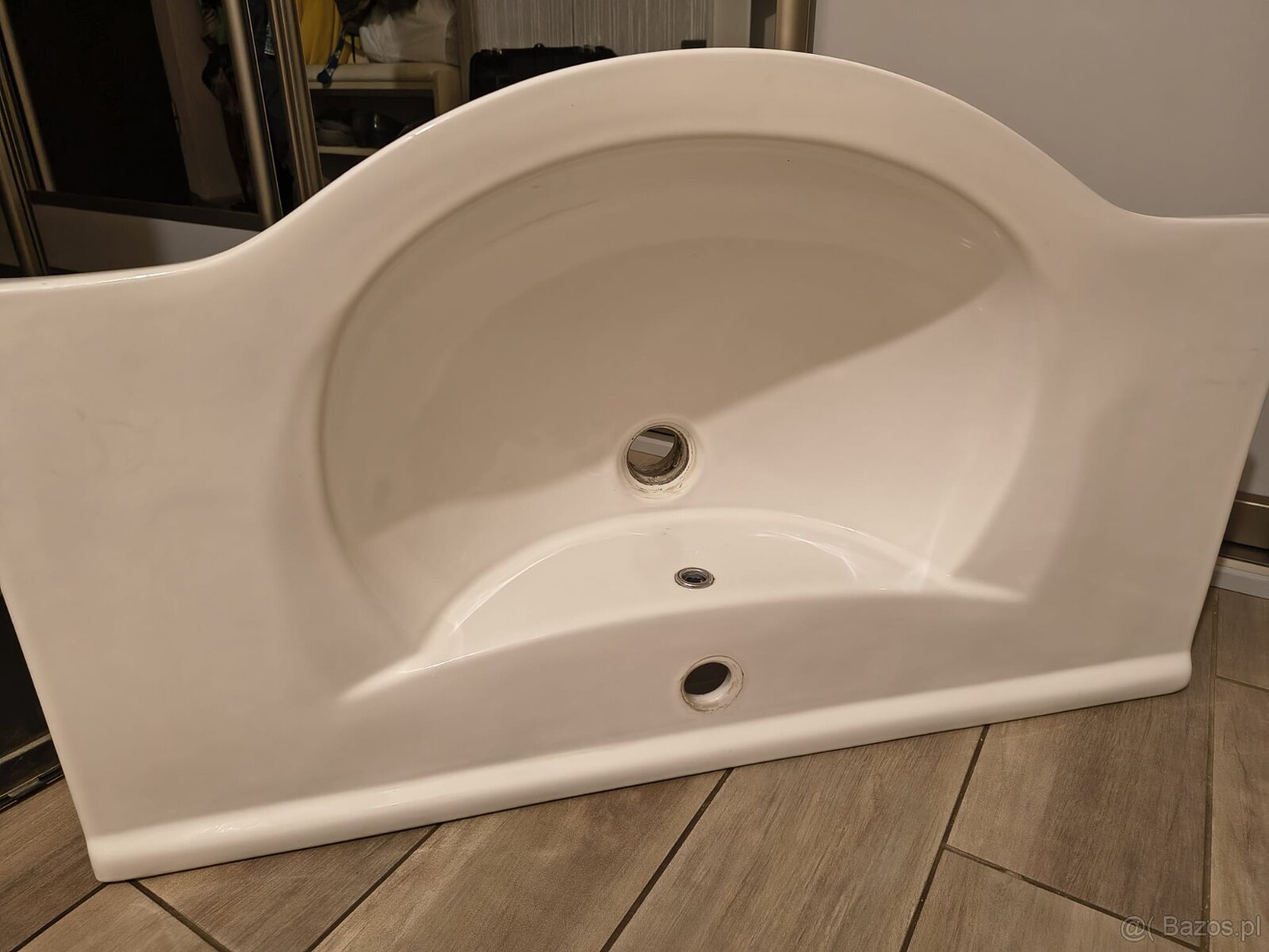 Umywalka Rio85 do kompletowania np z szafkami z serii Aqua Line. Klasyczna umywalka biała ceramiczna z otworem pod baterię i przelewem. 85.50 x 49.50 (cm). Głębokość części zalewowej ( od sitka do poziomu blatu ) 13 cm. Umywalka mało używana. Stan techniczny i wygląd bez zarzutu, jakkolwiek z prawie niewidoczną powierzchowną skazą fabryczną. Dla porównań cena nowej ( według ogłoszeń w internecie ) od 430 zł wzwyż.